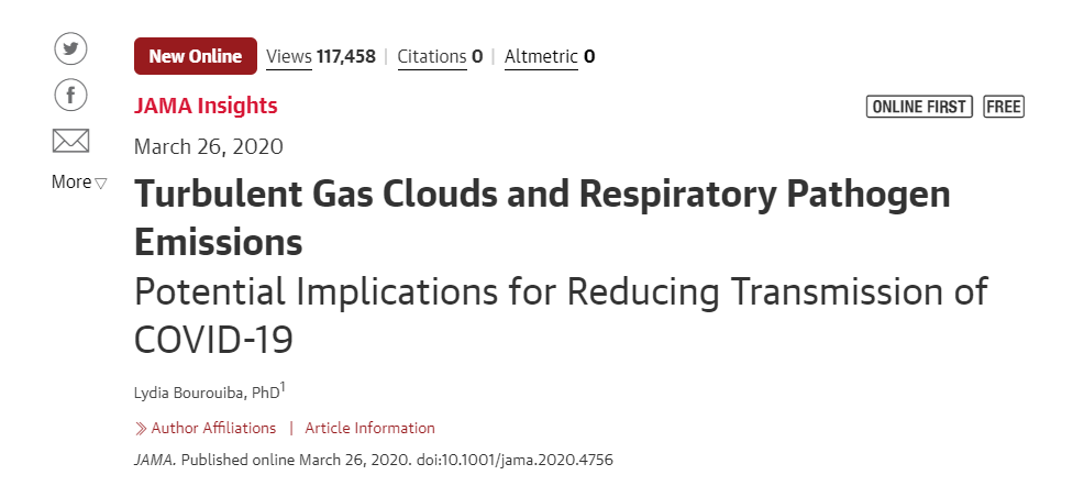 Lydia Bourouiba. Turbulent Gas Clouds and Respiratory Pathogen Emissions, JAMA (2020). DOI: 10.1001/jama.2020.4756